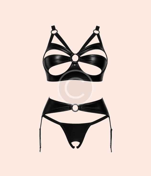 Black vinyl strappy set